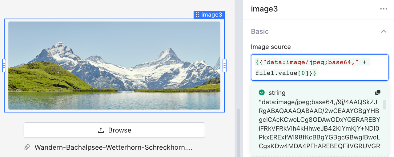 One common use case for base64 image display would be combining a **File Upload** component with an **Image** component.
