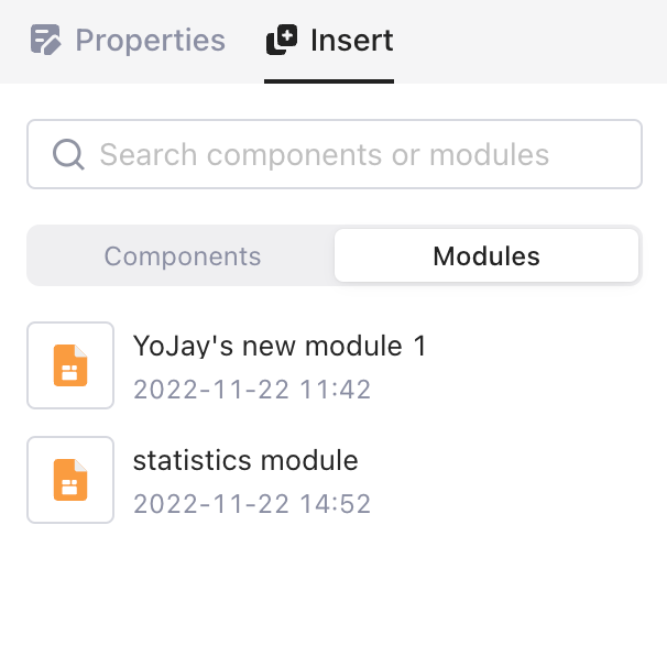 Ao criar um aplicativo, você deseja reutilizar componentes e consultas em diferentes aplicativos. Módulos são o que você precisa. Um módulo compreende componentes e consultas. Você pode inserir um módulo em um aplicativo ou em outros módulos (referidos como *aplicativos externos* no restante deste documento) e ele funciona como um único componente.