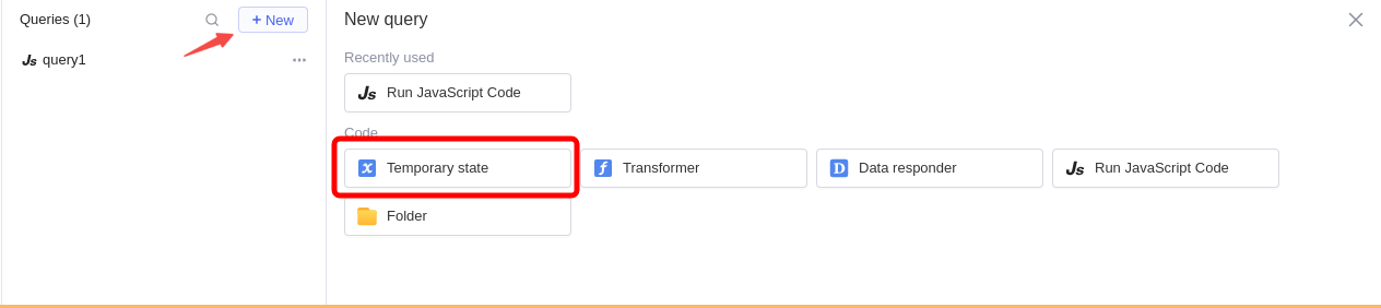 Clique em **+ Novo** e selecione **Estado temporário** no editor de consultas.